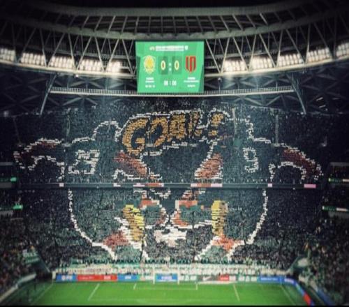 北京時間4月12日,北京國安坐鎮主場對陣本輪的中超對手成都蓉城。在比賽開始前,工體現場展示張玉寧、法比奧巨型TIFO。