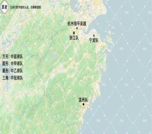 浙江省是第二檔的2號位(總第5名),擁有1超1甲2乙共4支球隊,在中超的浙江隊之外,中甲的寧波隊由上海嘉定匯龍搬遷而來,中乙的溫州隊由江西黑馬青年搬遷而來,杭州臨平吳越由廊坊榮耀之城搬遷而來,異地搬遷的球隊多達3支,體現出浙江省對于職業足球俱樂部具有強大的吸引力。