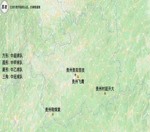 貴州省是第四檔的1號位(總第19名),擁有1乙3冠共4隊,貴陽市的球隊是中乙的貴州貴陽競技和中冠的貴州飛鷹,黔東南苗族侗族自治州的球隊是中冠的貴州村超開大,黔西南布依族苗族自治州的球隊是中冠的貴州栩烽棠。