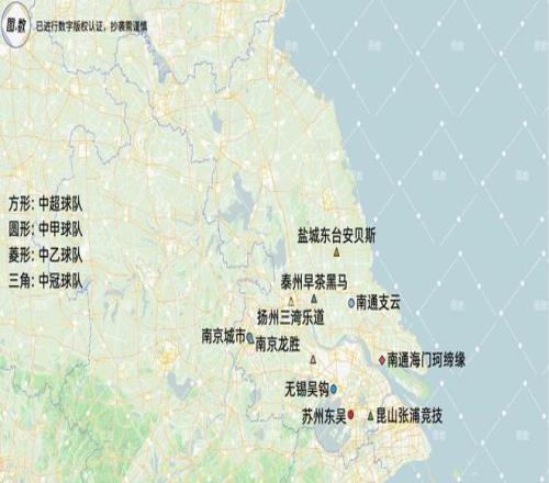 江蘇的11隊來自8個設區的市,但沒有任何一個市的球隊超過兩隊,呈現出“去中心化”的特征,而且江蘇總共只有13個市,超過一半以上的市都有征戰于中國前四級聯賽的球隊,普及率相當高。