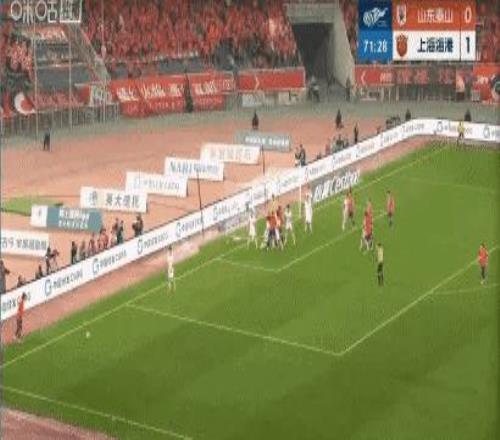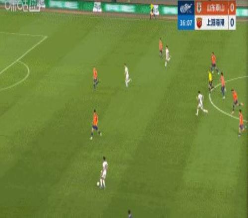 頂住泰山開局猛攻后,海港在第37分鐘抓住機會,李帥突入禁區左側橫傳門前,楊希包抄推射破門,打進個人中超首球,海港客場1:0領先。