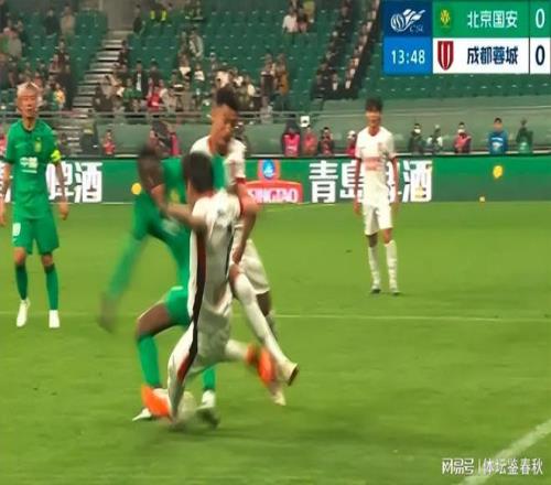 然而,就在兩年前,同樣是國安的比賽,主裁判同樣是王競(jìng),當(dāng)時(shí)還在國安的張?jiān)磳?duì)津門虎的謝維軍做出了同樣的動(dòng)作,從落腳點(diǎn)到身體姿態(tài),幾乎可以說是高度一致。可最終判罰結(jié)果和賽后評(píng)議卻明顯不同,當(dāng)時(shí)的王競(jìng)毫不猶豫地向張?jiān)闯鍪玖思t牌。